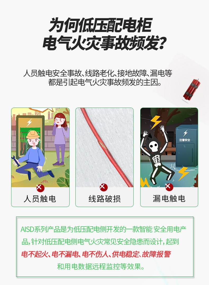 工商业园区、大型商超、医院等三相用电场景,存在用电负荷大、安全隐患多、故障影响范围广的痛点,线路老化、漏电短路易引发重大安全事故,电压波动、过载会导致设备损坏,而传统配电设备缺乏实时监测与远程管控能力,故障排查耗时费力,严重影响生产运营。安科瑞 AISD300 系列三相智能安全配电装置,针对三相低压配电痛点量身打造,实现安全防护、智能监测、高效运维一体化。