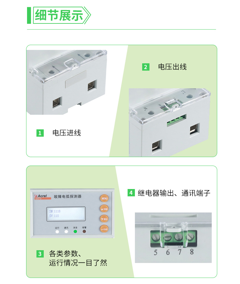 产品通过消防 3C 认证,适配医疗、教育场所的严苛安全标准,导轨式安装不占空间,可嵌入病房配电箱、教学楼楼层柜。接入智慧用电系统后,后勤部门可实时监控全校园 / 全院电弧状态,提前预警隐患,既守住电气防火底线,又保障特殊场景供电连续性,解决 “保安全与保供电" 的核心冲突。
