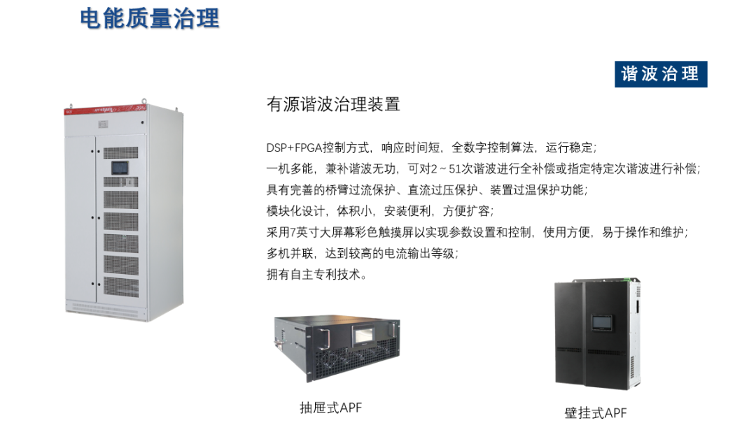 APView500 在线监测:谐波、不平衡、电压暂降 / 暂升、闪变全量采集。APF/SVG/ 中线安防保护器组合治理,谐波补偿、无功优化、三相不平衡一站解决,功率因数≥0.99,降低线路损耗与设备发热。